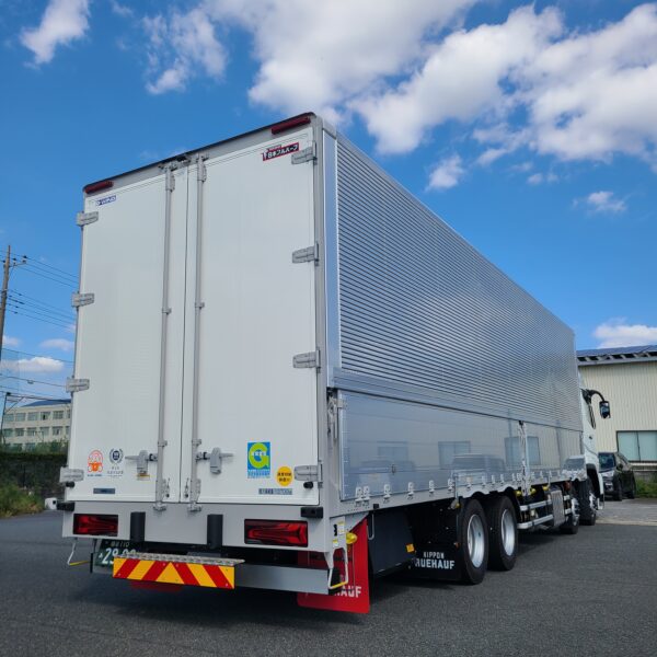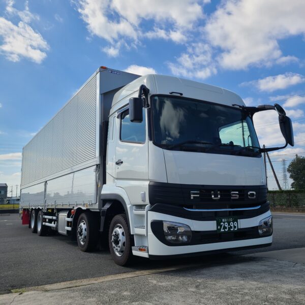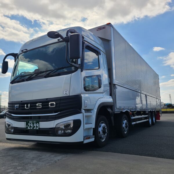 代替車両 納車 2025年10月10日 三菱ふそう大型スーパーグレート4軸低床「ドライ・ウイング」が納車されました。 今日からこのトラックと一緒に走り出します。 よろしくお願いいたします。 トピックス一覧へ